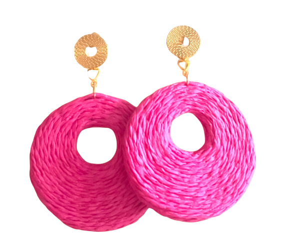 Breng een vleugje bohemian chic met deze opvallende hoop oorbellen, handgemaakt van duurzaam raffiamateriaal in frisse kleure. Deze oorbellen hebben een natuurlijke textuur met elegante details. Perfect voor een zonnige dag of een casual uitje, deze lichte oorbellen voegen een unieke flair toe aan elke outfit.