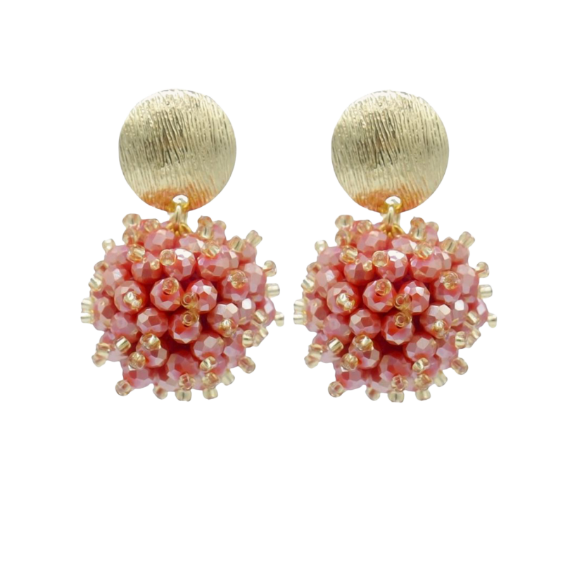 Deze oorbellen stralen subtiele glamour uit door hun verfijnde bolvorm, opgebouwd uit glinsterende facet geslepen glaskralen. De facetten vangen het licht op een prachtige manier en zorgen voor een elegante schittering bij elke beweging. Een stijlvol en tijdloos ontwerp dat moeiteloos past bij zowel een casual als feestelijke outfit.